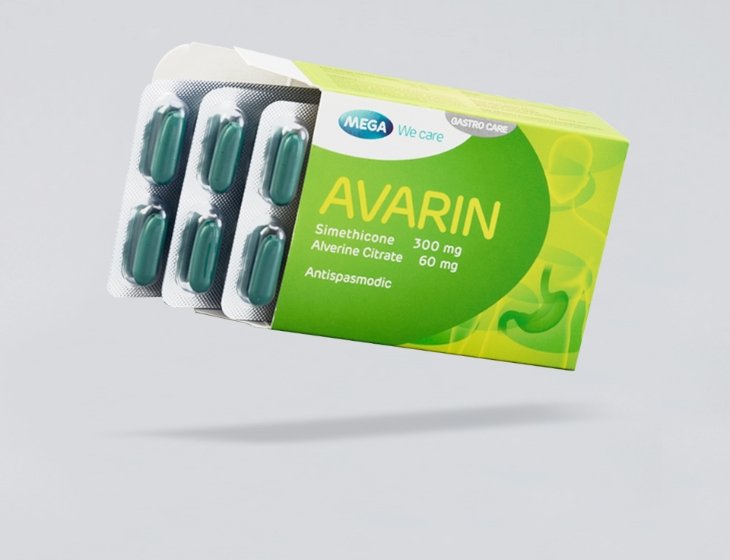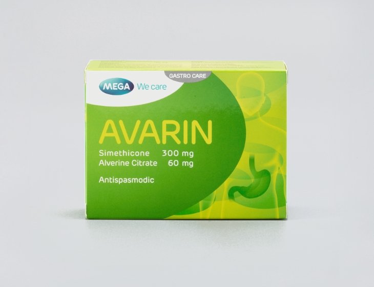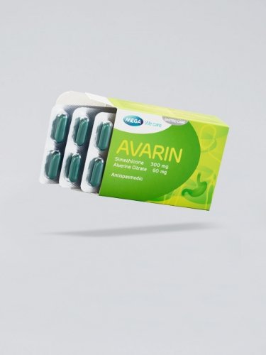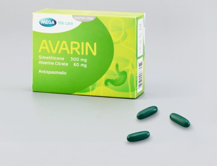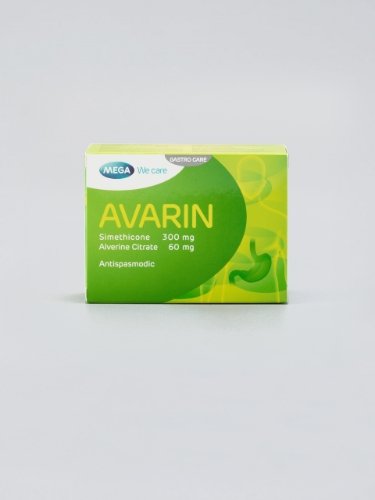 Avarin is a combined preparation containing alverine, a spasmolytic agent with a direct effect on the smooth muscle of the digestive tract. Alverine exerts fewer undesirable effects. The second component of the preparation is simethicone, which by a physical mechanism decreases the formation of gas and facilitates its removal from the digestive tract.