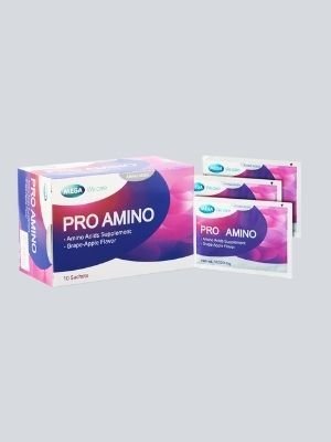 Dissolve 1 sachet of PRO AMINO in 250 ml of water and drink once daily before bed time or as prescribed by a physician.