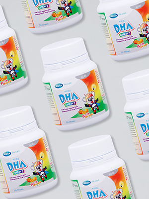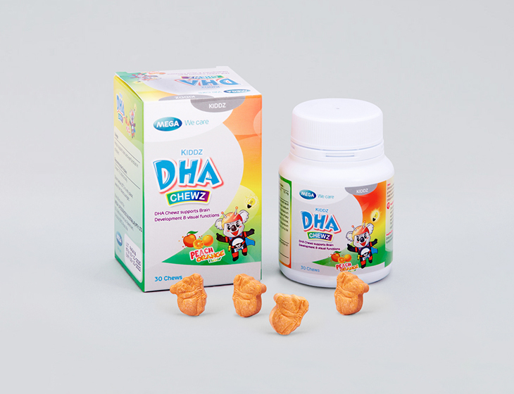 KIDDZ DHA CHEWZ contains DHA, an omega-3 fatty acid which is one of the major building blocks of the brain. It is considered as a critical component for brain development, especially for children when their brain is undergoing rapid growth. Studies have shown improvements in cognition (brain processes such as thinking, concentrating, learning, remembering, etc.) and behaviour as a result of supplementation with polyunsaturated fatty acids including DHA.