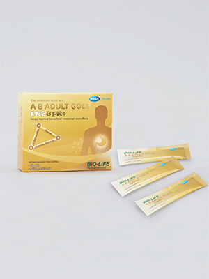 AB ADULT GOLD PRE & PRO is an intestinal probiotic for senior citizens, to help improve digestion, nutrition absorption and to prevent constipation.